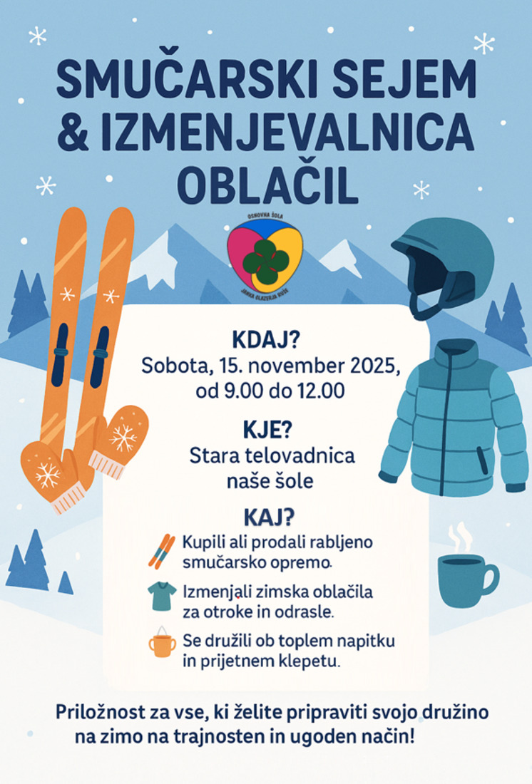 Vabimo vas, da se nam pridružite v soboto, 15. novembra 2025 ob 9.00, na Osnovni šoli Janka Glazerja v Rušah (STARA TELOVADNICA), kjer bomo skupaj ustvarili prijetno in koristno dopoldne! Dogodek je odlična priložnost, da poiščete, prodate ali zamenjate smučarsko opremo in oblačila, ki jih ne uporabljate več. Prosimo, da oblačila in opremo prinesete najkasneje do 8.45, da uredimo razstavni prostor.