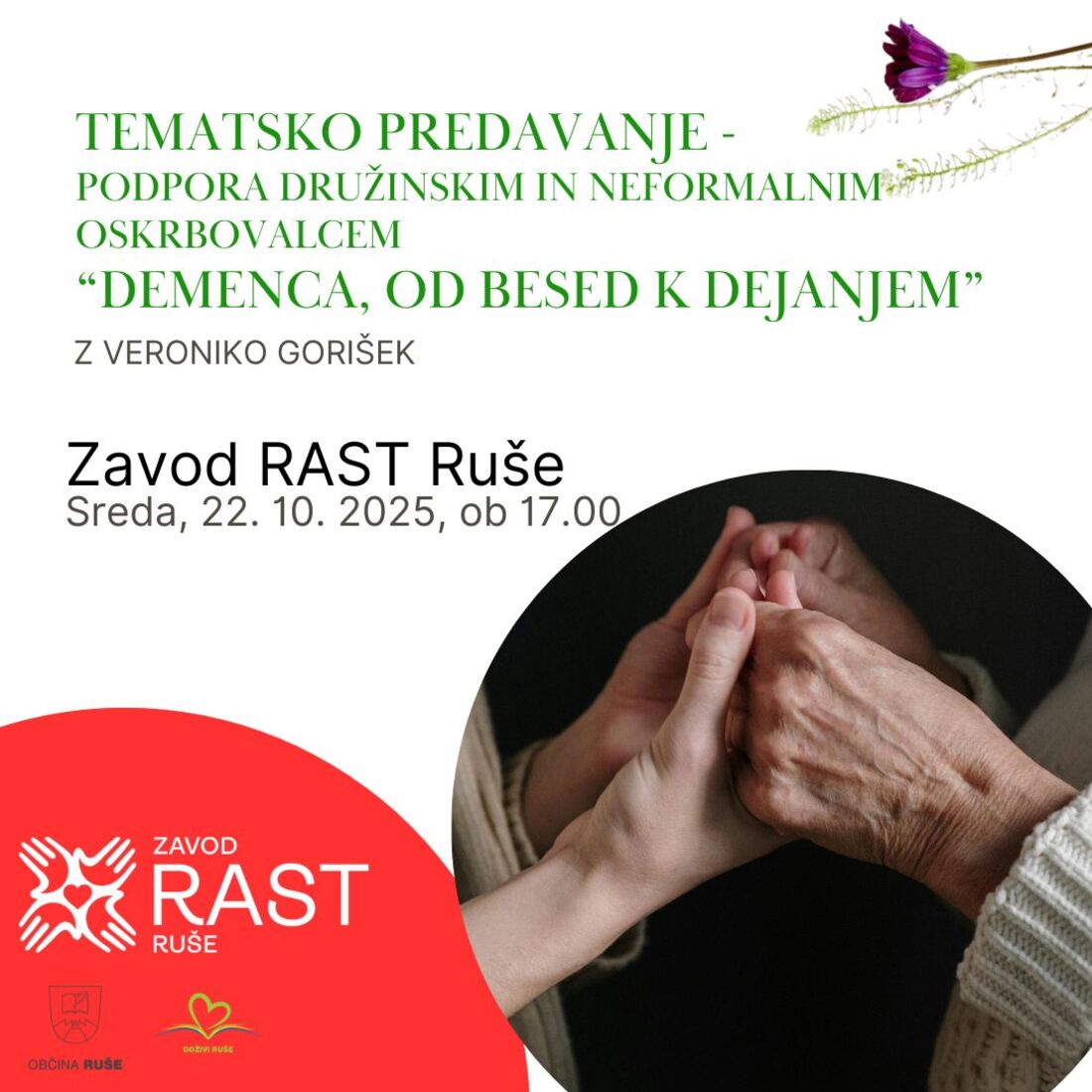 Tematsko predavanje - podpora družinskim in neformalnim oskrbovalcem "Demenca, od besed k dejanjem"