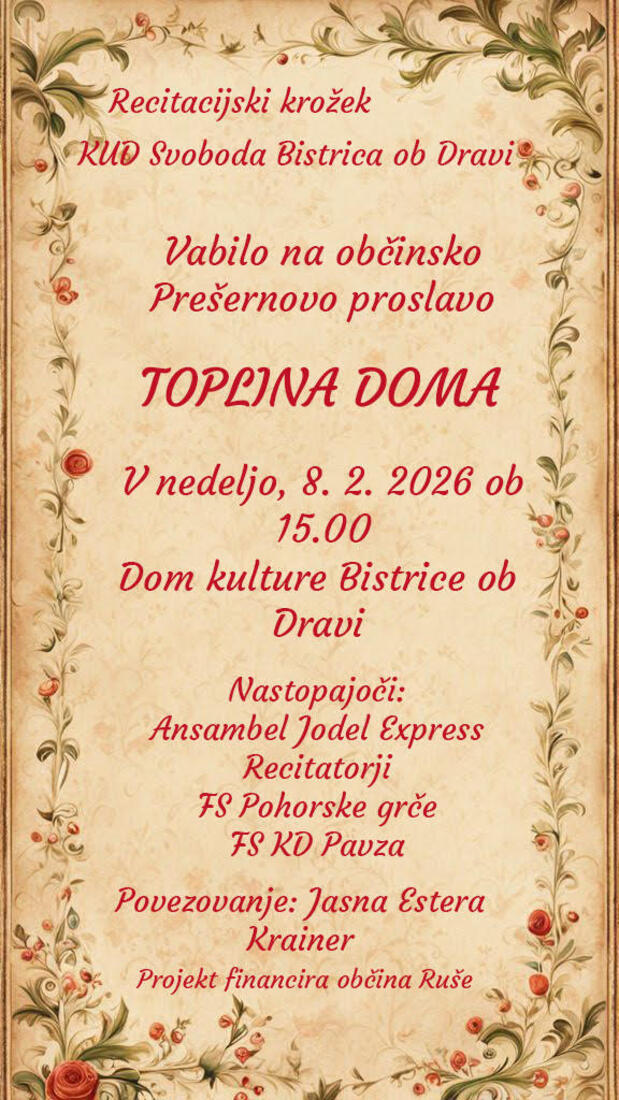 Prešernova proslava "Toplina doma"