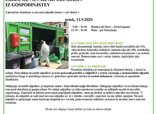 Zbiranje nevarnih odpadkov iz gospodinjstev v petek, 11. 9. 2020