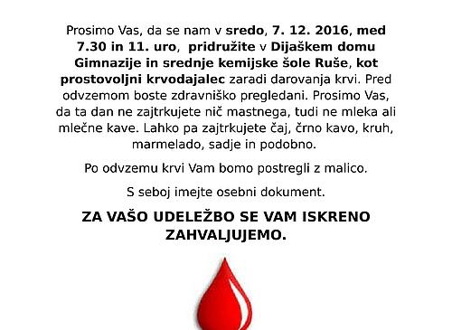 Vabilo na 3. krvodajalsko akcijo