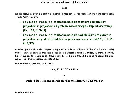 Slovenski regionalno razvojni sklad je dne 3. 2. 2017 objavil:
