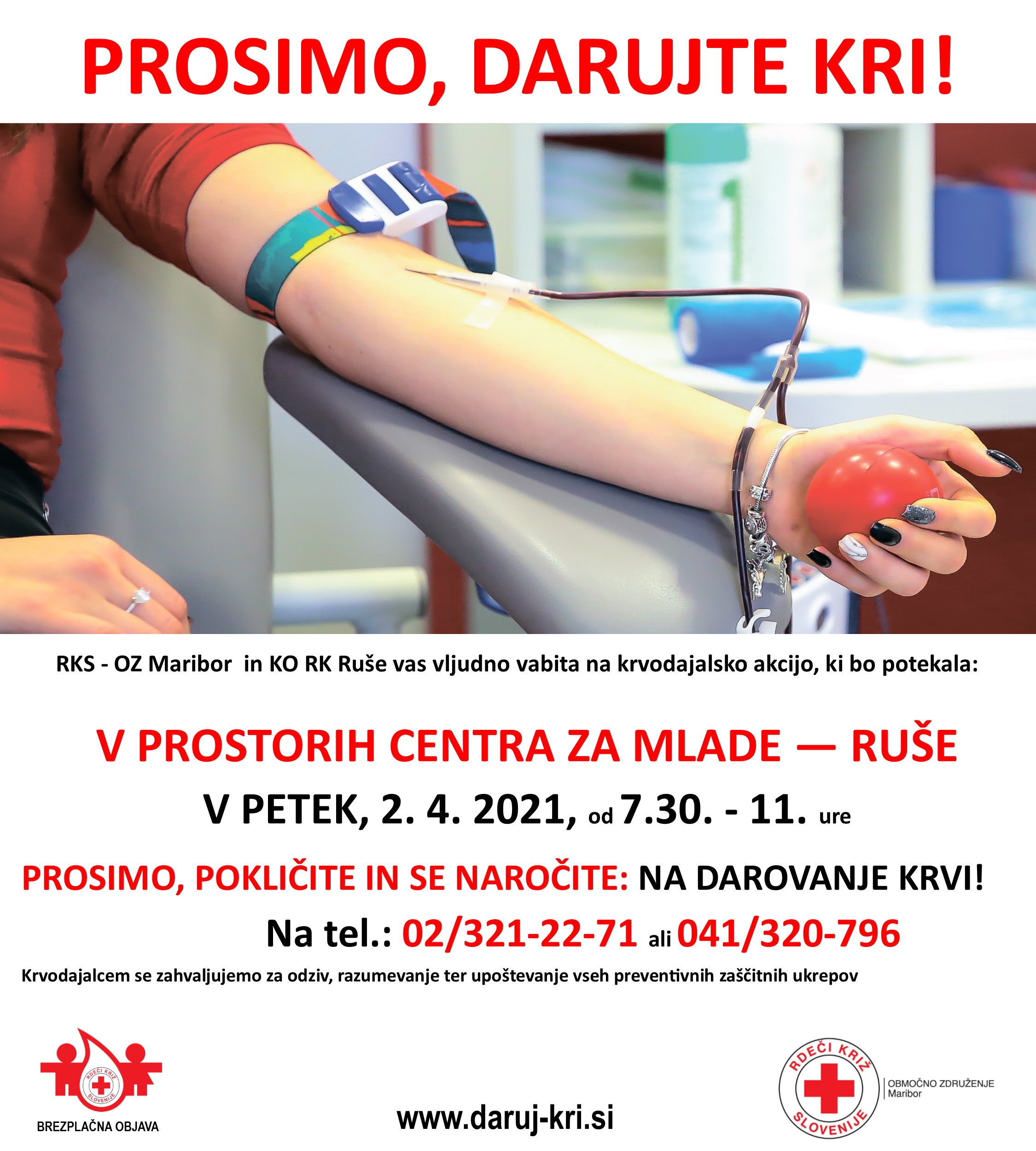 VABILO NA KRVODAJALSKO AKCIJO v petek, 2. 4. 2021