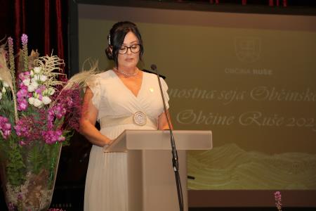 V svojem govoru se je ozrla nazaj, na opravljeno delo, ko v ospredje stopijo dejanja, dogodki in posamezniki. Posamezniki, ki sledijo zastavljenim ciljem in so usmerjeni v razvoj, s tem pa prispevajo k napredku naše lokalne skupnosti in tem izrazila zahvalo vsem, da smo prišli do točke, kjer smo danes. Naj bo to, po njenih besedah, motivacija za nadaljnji napredek.