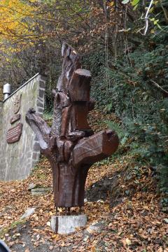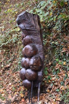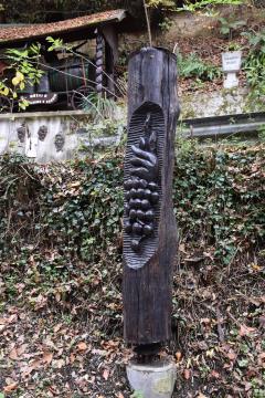 Lesni črvi (13) in društvo Rulik so kar najzaslužnejši za vse (lesene) kipce te forme vive ob Vinski poti. Na ovinku najdeš Križno znamenje (14) in še en vir vode (15), ki prepletata naravo z duhom človeka, lepotami, s pravljicami. Da so duhci lahko tudi dobri, spoznamo na poti naprej. Strah je odveč, saj RUŠKOMALH posuje s srečo vsakega pohodnika, ki pride mimo. Obstani za trenutek in se prepusti razgledu. Nato le zavij v ovinke, pogumno navzdol. Kot sopotnik z naravo nas Drozg (21) opomni, kako nas narava nagradi, če smo z njo prijazni.